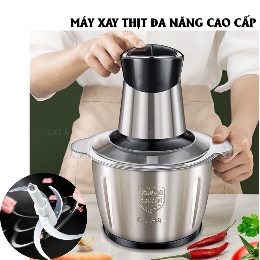 Máy Xay Thịt, Xay Giò Chả Công Suất Lớn Inox 304 Lưỡi Inox Ko Gỉ 2L 250W