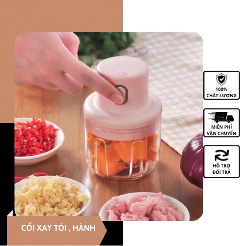 THÔNG TIN SẢN PHẨM:- Tên sản phẩm: Máy xay tỏi ớt mini cầm tay 250ml - Máy xay trộn nghiền gia vị đa năng pin trâu lưỡi thép 3 cánh quay nhanh không gỉ