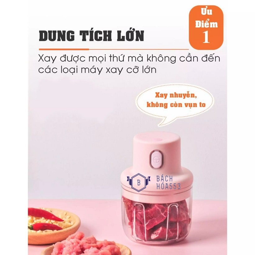 Công dụng : Xay tỏi ớt, băm rau củ quả, xay thịt, gừng, nghệ, hành, sả...