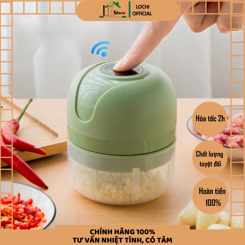 Máy Xay Tỏi Ớt Mini Tích Điện Thế Hệ Mới Thể Tích 250ml, Có Cổng Sạc USB, Dễ Sử Dụng Lochi Store