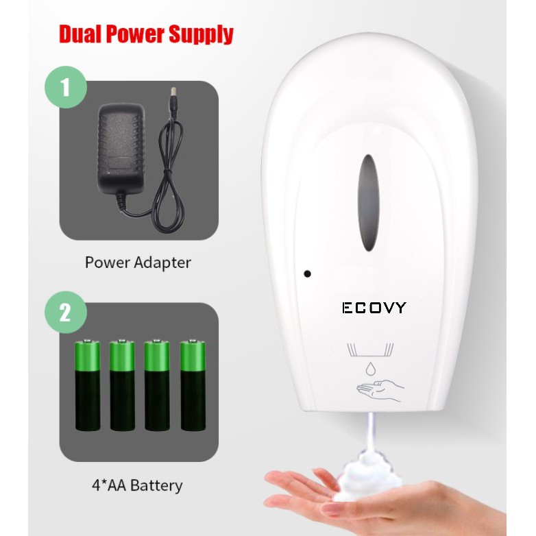 Giới thiệu Máy xịt rửa tay cảm ứng tự động ECOVY vòi phun bọt tuyết, màu trắng (1000ml), máy tròn sang trọng