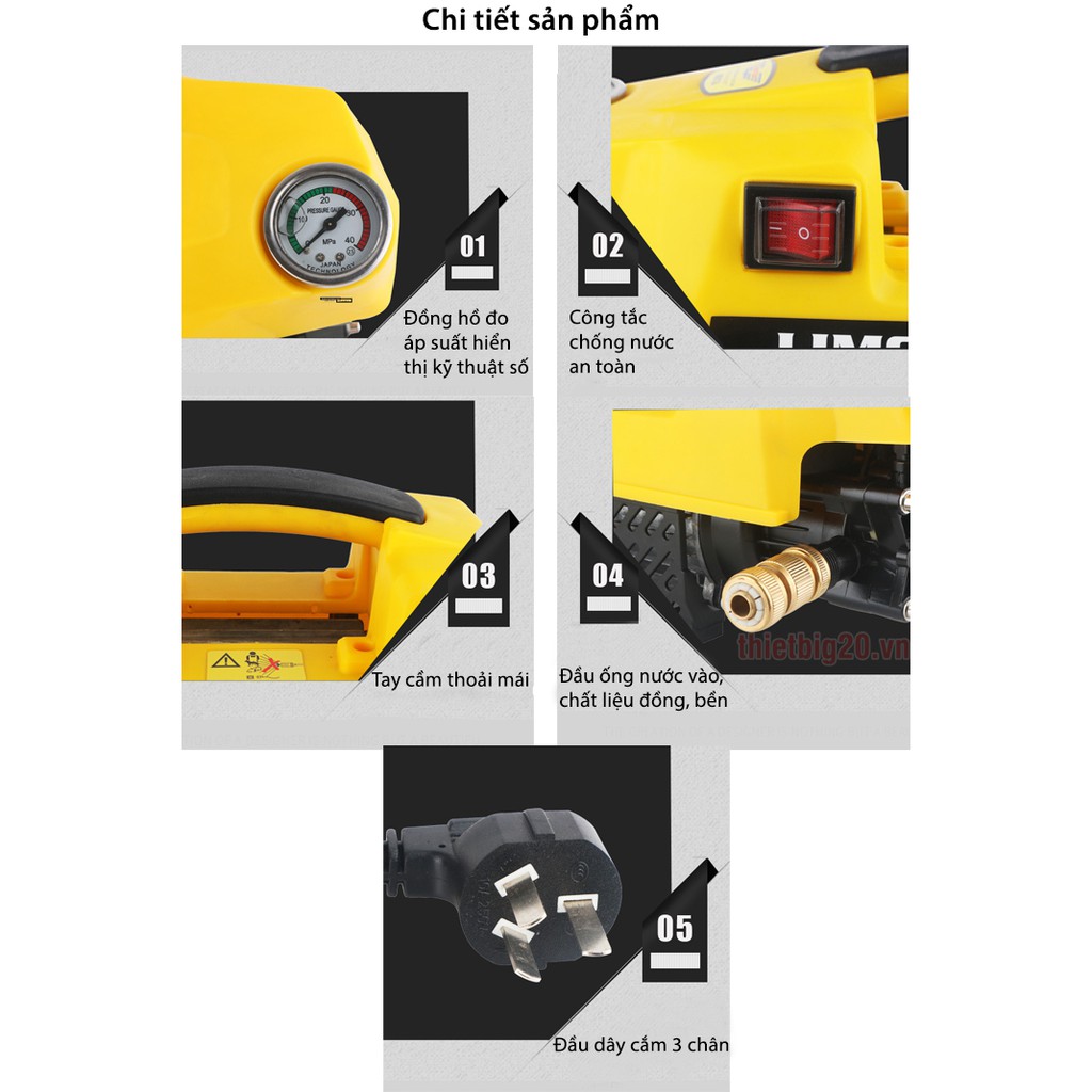 - Phạm vi sử dụng: rửa xe, tưới cây, vòi xịt tầm xa, rửa sàn