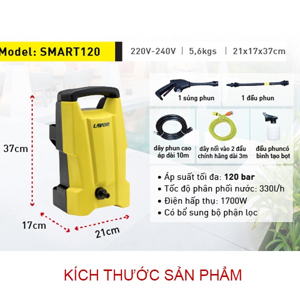 Nhà cửa & Đời sống > Dụng cụ & Thiết bị tiện ích > Dụng cụ > Máy rửa áp lực nước || Máy xịt rửa xe mini phun áp lực nước cao áp Lavor SMART120 new model, 1700W, bảo hành 1 nămCòn hàng