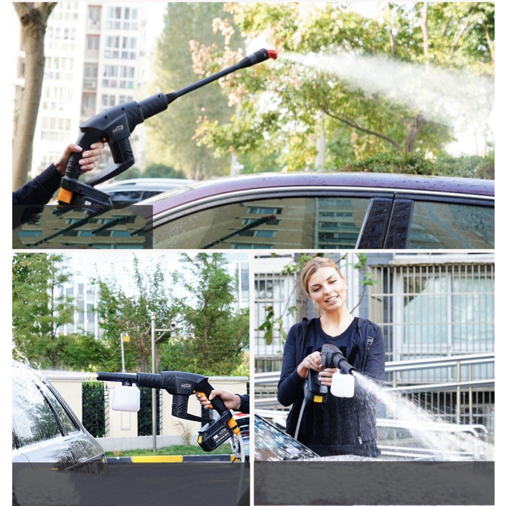 Nhà cửa & Đời sống > Dụng cụ & Thiết bị tiện ích > Dụng cụ > Máy rửa áp lực nước || Máy xịt rửa xe vệ sinh nhà cửa 2in1 tăng áp lực nước không dây pin lithium 21VCòn hàng