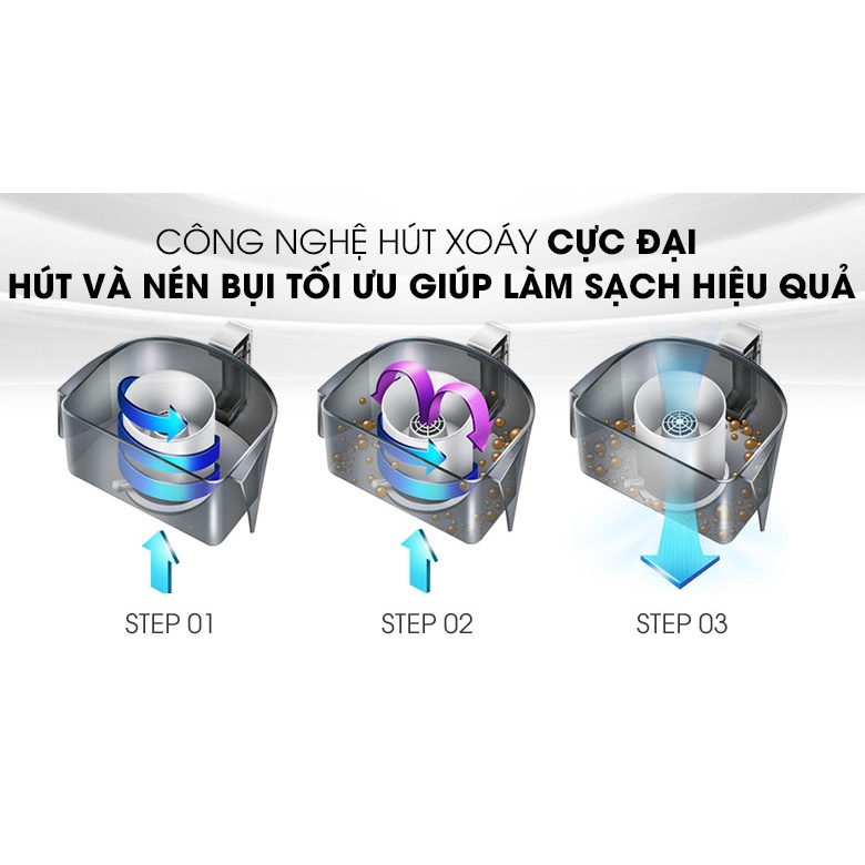 Máy có hộp chứa bụi dung tích lớn 2.2 lít, chứa được lượng bụi lớn, người dùng không cần phải đổ bụi nhiều lần, tiết kiệm thời gian, công sức
