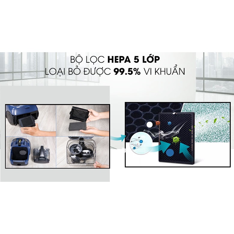 - Bộ lọc: Bộ lọc Hepa 5 lớp