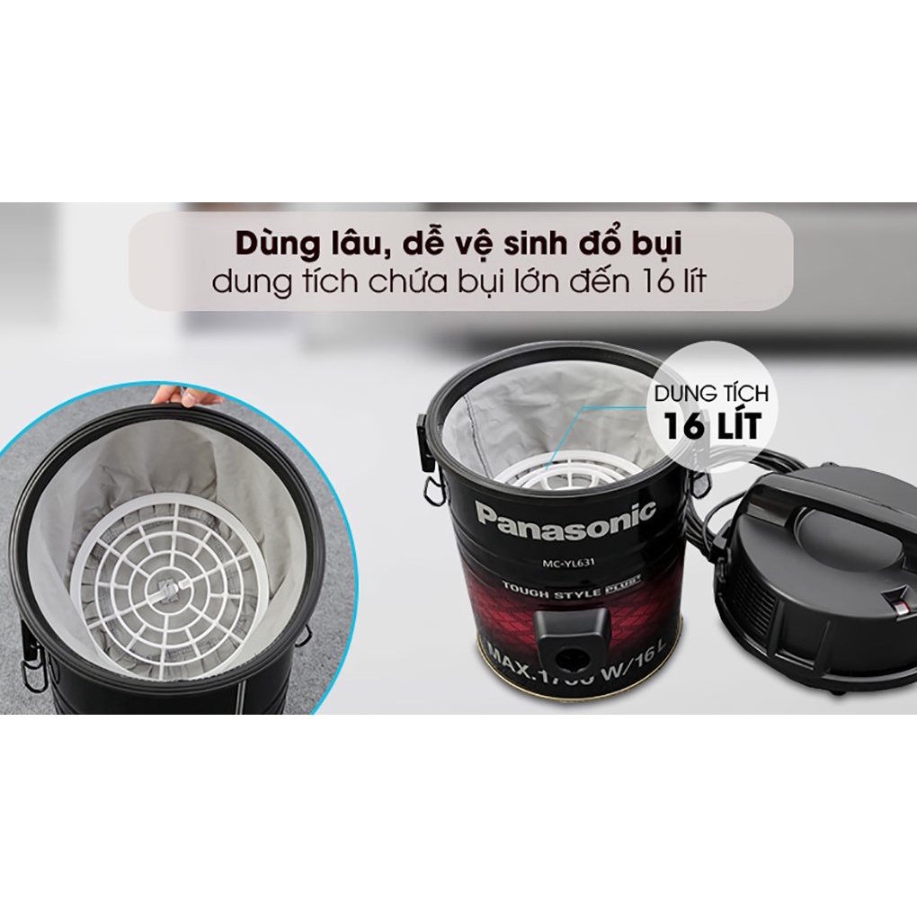 - Máy hút bụi Panasonic MC-YL631RN46 thiết kế với động cơ hoạt động êm ái, bền bỉ và mạnh mẽ tạo nên sự vững chắc và an toàn cho quá trình làm việc