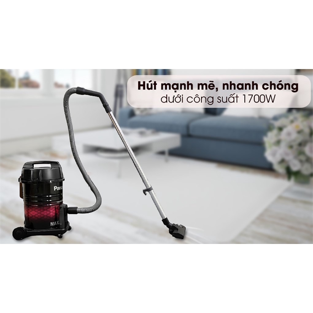 - Máy hút bụi hoạt động với công suất 1700W giúp rút ngắn thời gian làm việc đồng thời giúp tiết kiệm điện năng tiêu thụ mang lại sự tiện dụng