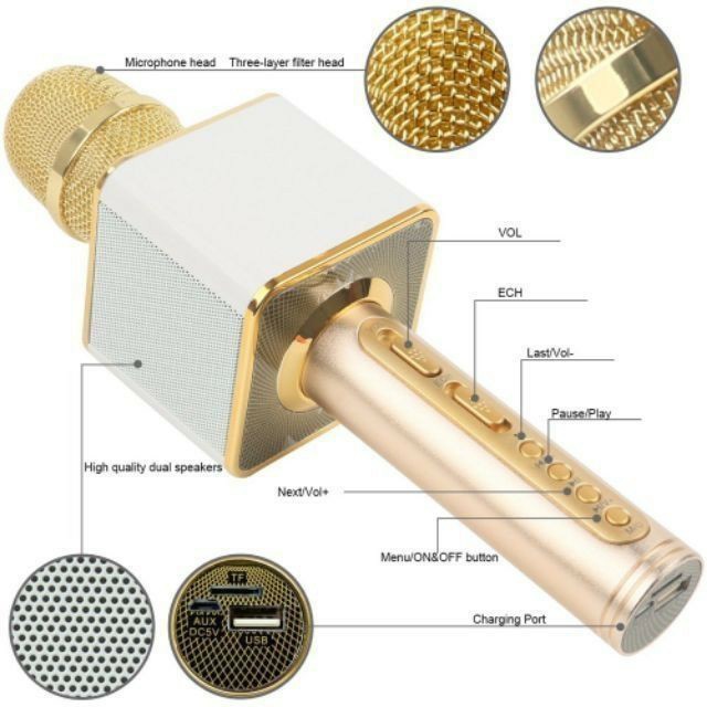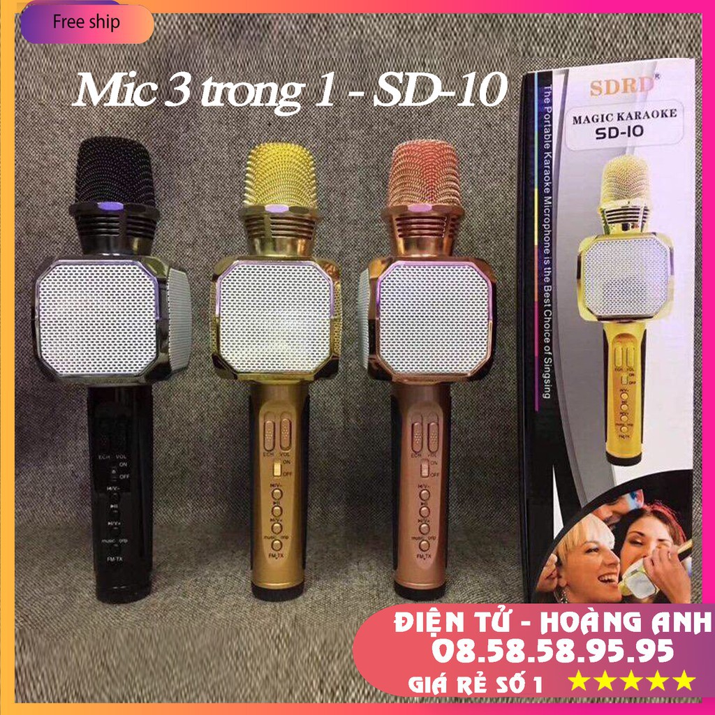 Mic hát karaoke bluetooth SD08 ( SD10 - SD17 - SD18 ) 3 in 1 loa to Mic Bass cực chuẩn, có khe thẻ nhớMic SD08 là phiên bản mới nhất của dòng micro Bluetooth Karaoke kèm loa thẻ nhớ đình đám trên thị trường. Đây là thiết bị giúp kết nối với điện thoại Smartphone thông qua sóng Bluetooth. Nhờ trang bị cả loa và mic trên cùng một sản phẩm nên chỉ cần mở một bản nhạc bất kì từ điện thoại là có thể phát trực tiếp ra loa, thỏa thích hát karaoke ngay tại chỗ với chất lượng âm thanh hay, to, rõ cực đỉnh.