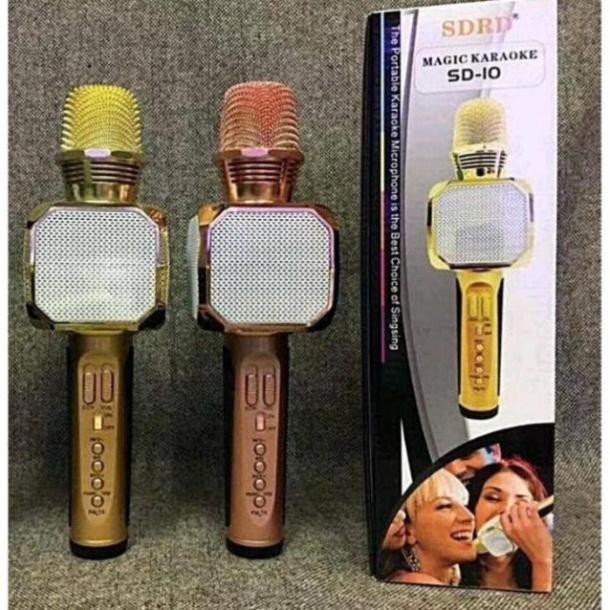 Mic hát karaoke bluetooth SD10 (SD08 - SD17 - SD18) 3 in 1 loa to Mic Bass cực chuẩn, có khe thẻ nhớĐây là thiết bị giúp kết nối với điện thoại Smartphone thông qua sóng Bluetooth. Nhờ trang bị cả loa và mic trên cùng một sản phẩm nên chỉ cần mở một bản nhạc bất kì từ điện thoại là có thể phát trực tiếp ra loa, thỏa thích hát karaoke ngay tại chỗ với chất lượng âm thanh hay, to, rõ cực đỉnh.