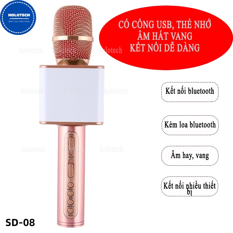Thiết Bị Âm Thanh > Micro thu âm || Mic hát karaoke không dây SD08 kèm loa bluetooth âm thanh to trầm ấm, míc hát bắt giọngCòn hàng