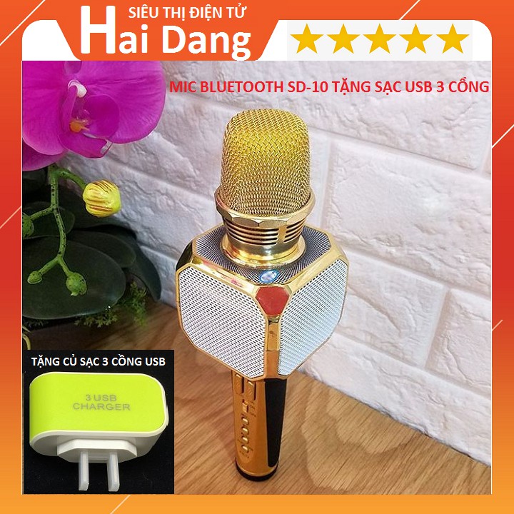 Mic Hát Karaoke, Micro Bluetooth SD-10 Tặng Củ Sạc 3 Cổng Sạc USB - Mic Hát Karaoke Kèm Loa Bluetooth Âm Thanh To Trầm