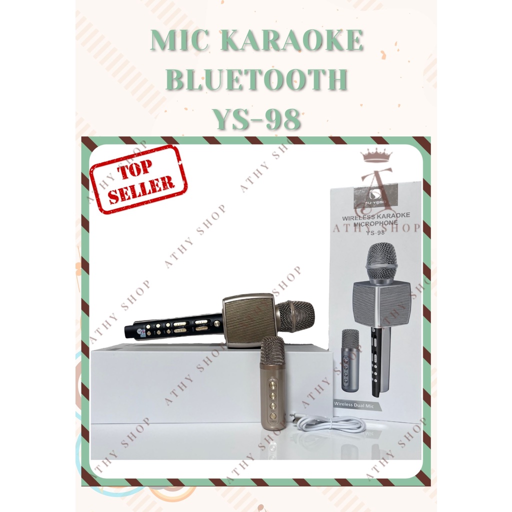 Thiết Bị Âm Thanh > Micro thu âm || MIC KARAOKE BLUETOOTH YS-98 CÓ MIC PHỤ SONG CA KHÔNG DÂY TIỆN LỢI, mic chống hú không rè volume lớn nhạc to rõ sống độngCòn hàng