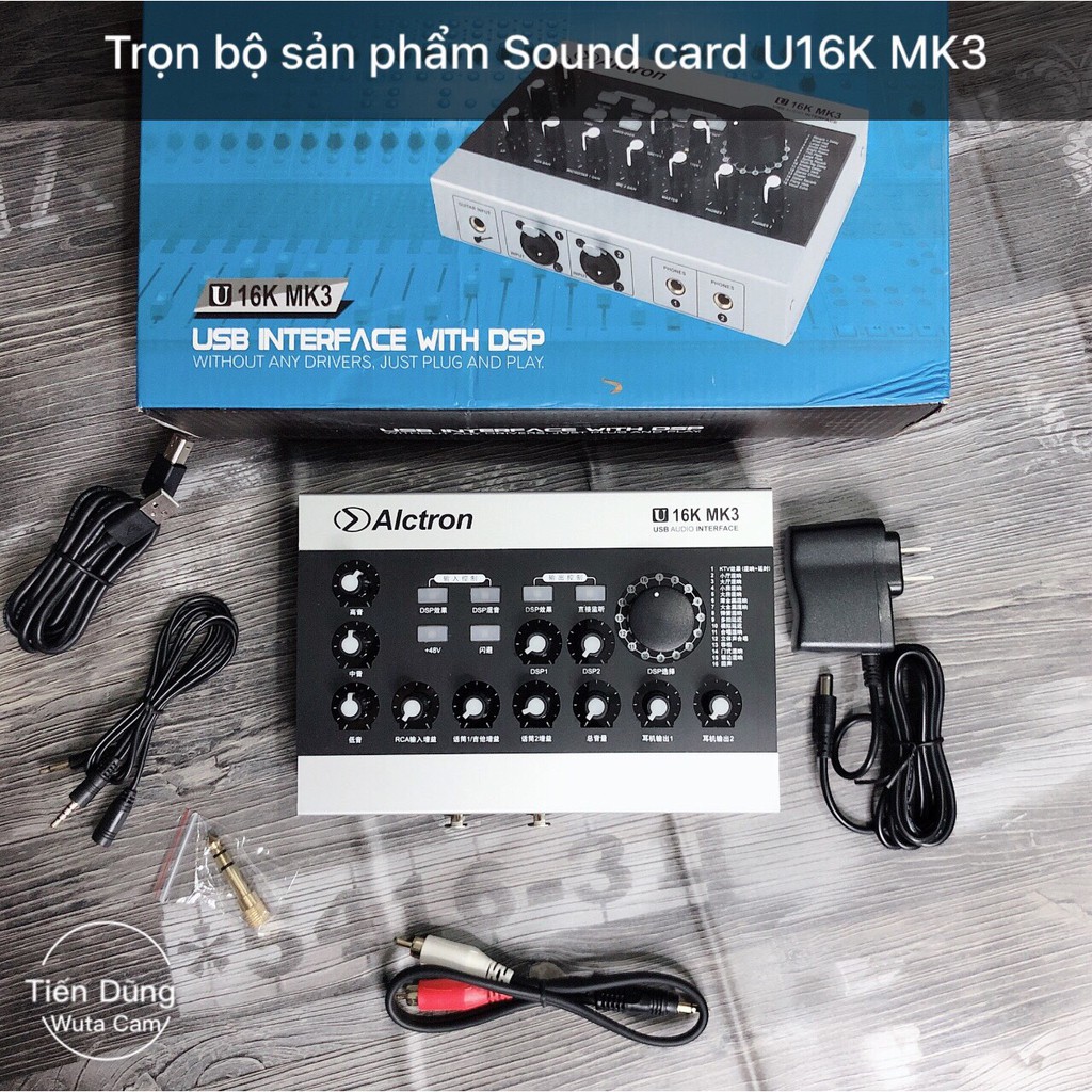 1 Sound U16K KMiii Gồm : dây nguồn USB, dây lấy nhạc , dây live đi kèm , zắc 6.5 , nguồn 5V.