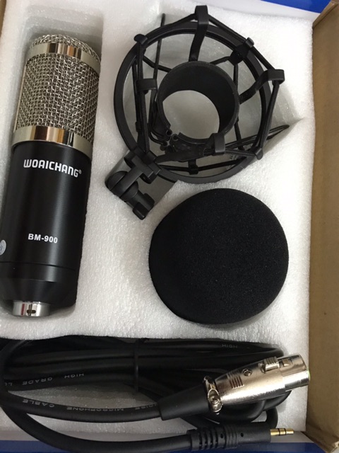 - Mic woaichang Bm900 đủ dây mic bệ mic nhựa và bông lọc