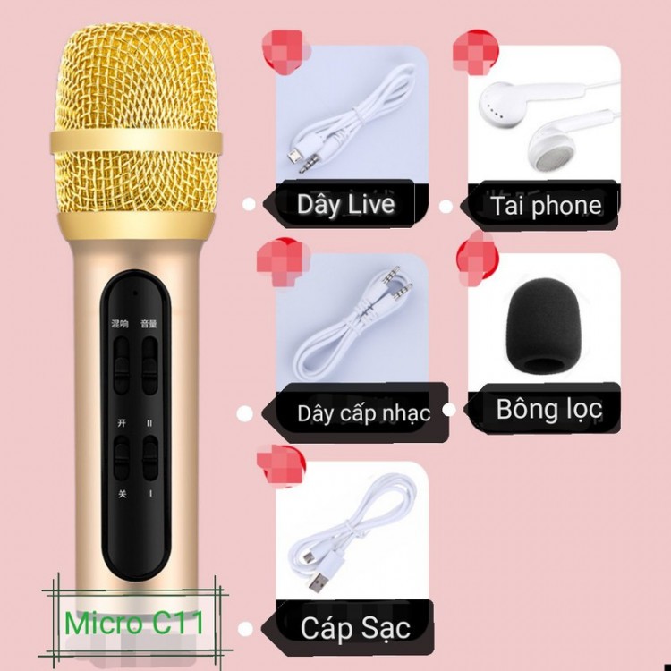 Mic Thu âm C11 livestream cao cấp tặng kèm tai phone---------------------------------------