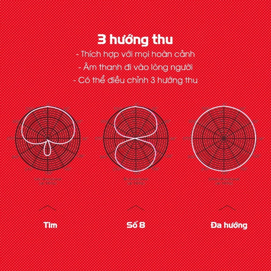 👉 Ba mẫu cực (cardioid, hai chiều, đa hướng) cho các ứng dụng đón khác nhau