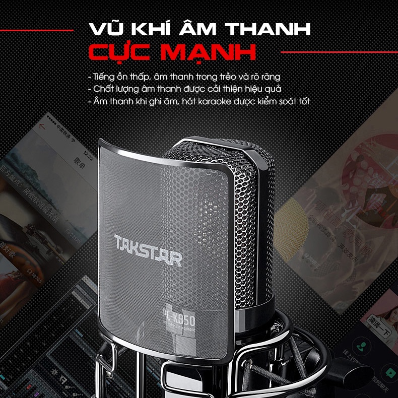 Mic Thu Âm Cao Cấp TAKSTAR PC-K850 Hát Karaoke, Livestream, Bán hàng, Streamer, Bảo Hành 12 Tháng