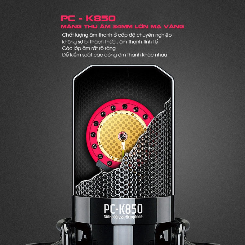 ✅ 1. Micro thu âm cao cấp Takstar PC-K850✔ Thiết kế màng thu 34mm mạ vàng nguyên chất, dải tần đáp ứng và dải động rất rộng, đem lại âm thanh trung thực tách bạc trong trẻo