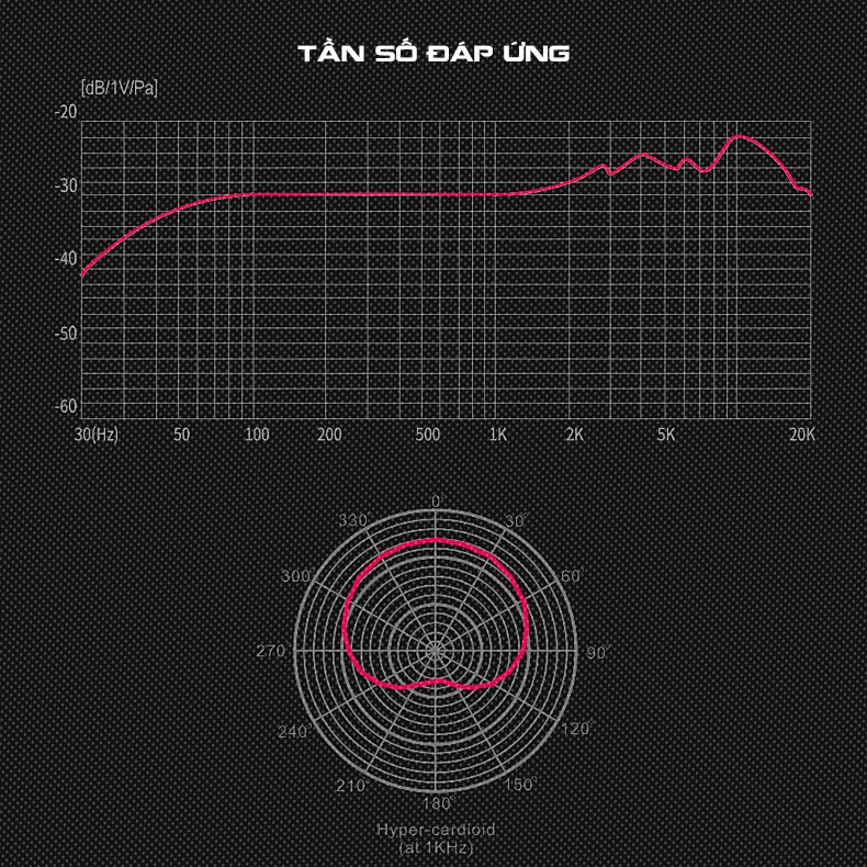 • Đáp ứng tần số: 30Hz-20KHz
