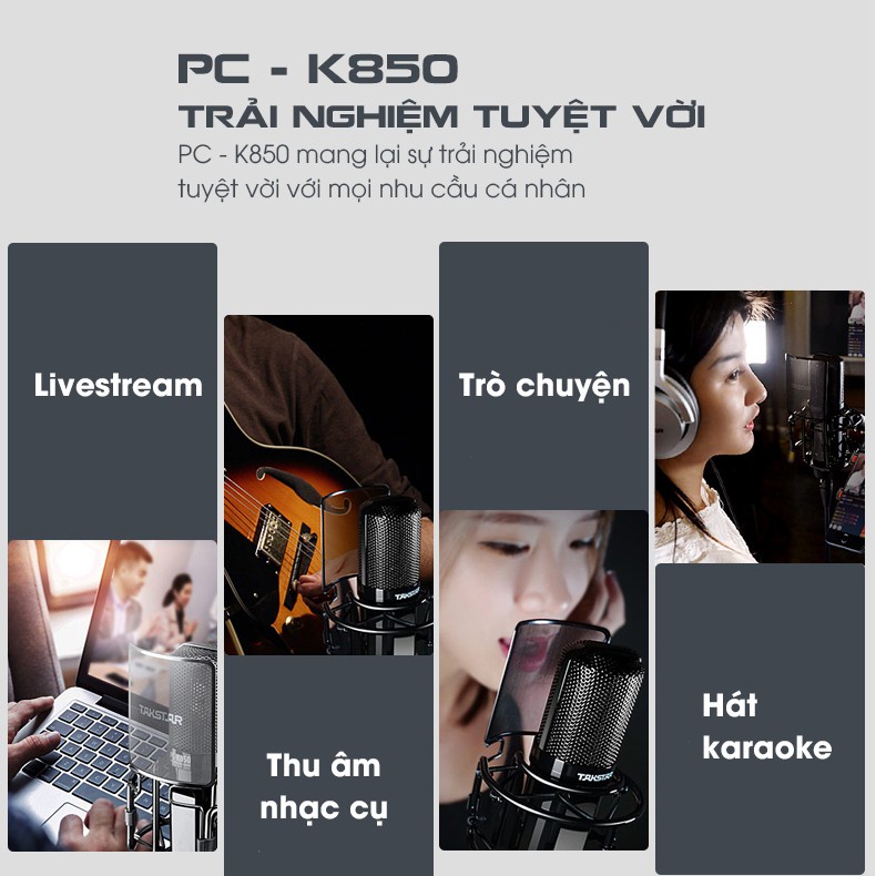 Giới thiệu Mic Thu Âm Hát Livestream Karaoke Chuyên Nghiệp Takstar PC-K850 Chính Hãng Cao Cấp, Độ Nhạy Cao, Lọc Ồn Bảo Hành 12Tháng