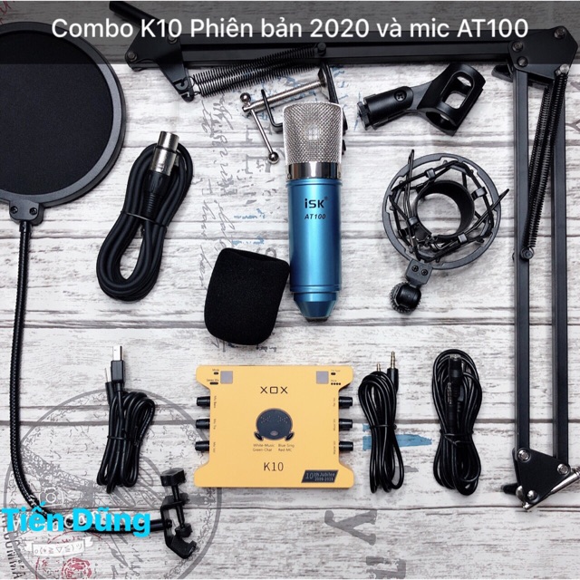 Bộ mic thu âm ISK at100 sound card xox k10 2020 phiên bản tiếng anh chân dây - combo livestream micro AT100 đã đầy đủ