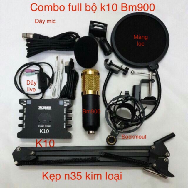 Bộ mic thu âm livestream hát karaoke BM900 K10 dây livestream ma2 full bộ