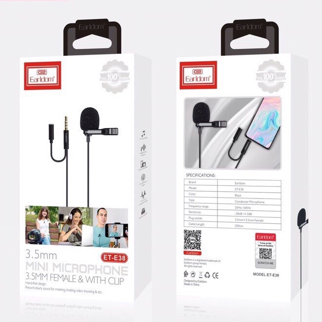 Thiết Bị Âm Thanh > Micro thu âm || Mic Thu Âm Micro Ghi Âm Mini Cho Điện Thoại Chân 3.5mm kèm Jack Cắm Tai Nghe Earldom E38 Livestream Học Trực TuyếnCòn hàng