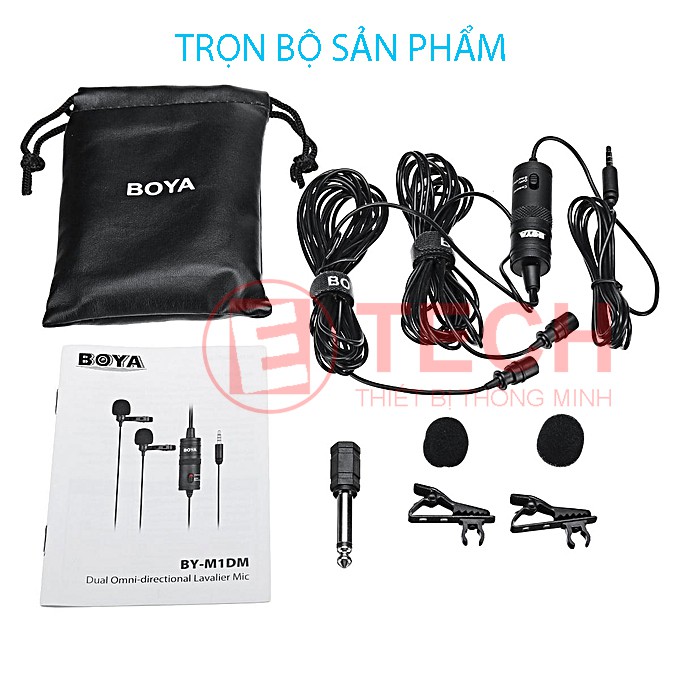 Mic Thu Âm Đôi Gài Áo BOYA BY-M1DM - Cam Kết Chính HãngMic thu âm gài áo Boya BY-M1DM là micro cho phép thu âm cùng lúc nhiều hơn một đối tượng. Mic được thiết kế với 2 đầu dây dài (tổng chiều dài cả dây 4m), đem lại khả năng thu âm từ khoảng cách xa, rất phù hợp khi cần phải thu âm nhiều hơn 1 người.