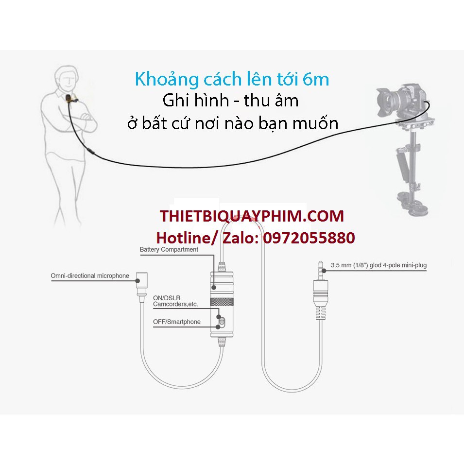 *Dùng với smartphone sẽ không cần pin vì mic sẽ nhận nguồn điện từ điện thoại.