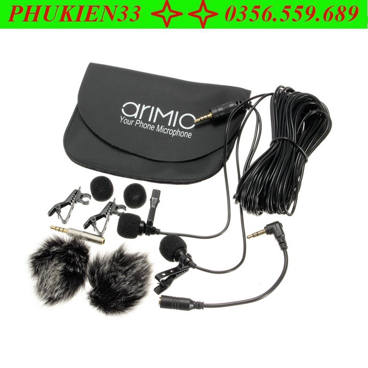 Micro cài áo 2 đầu mic AriMic Clipon Dual Lavalier