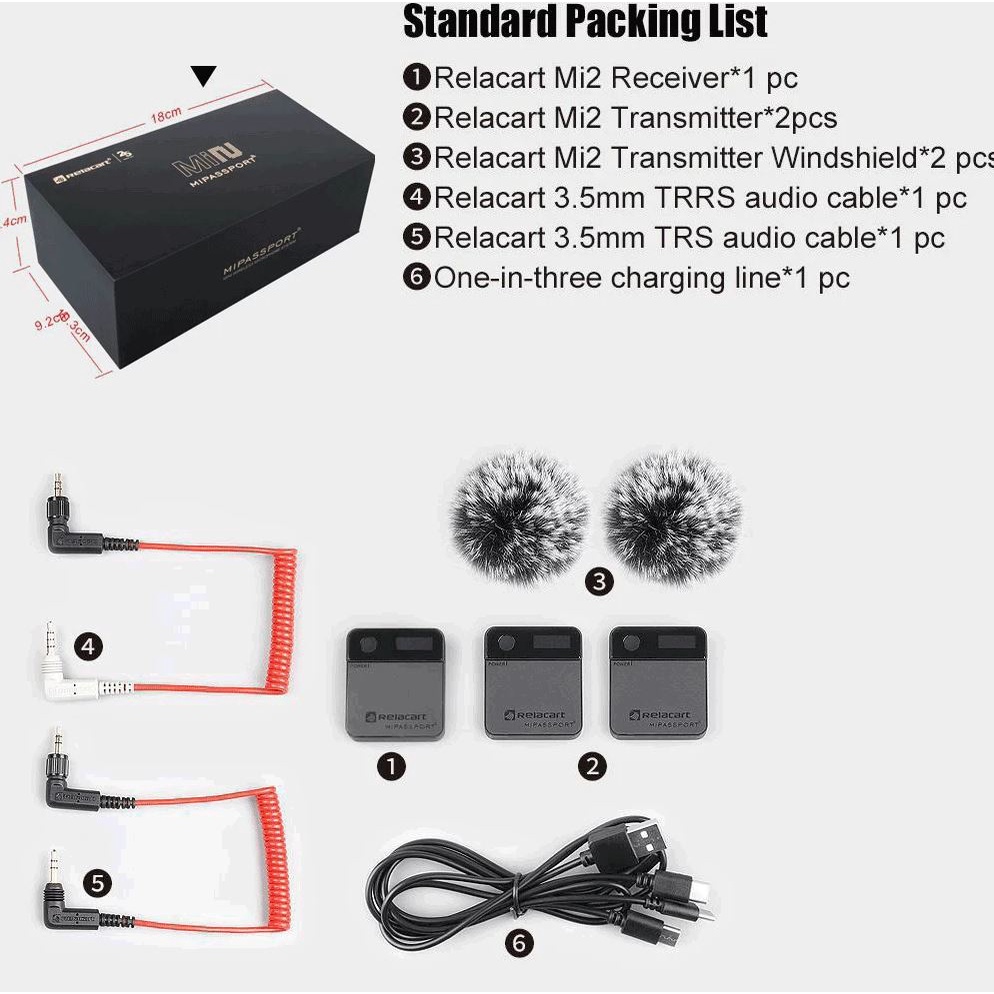 Relacart Mipassport Mi2 là hệ thống micro không dây nhỏ gọn tương thích với các thiết bị sử dụng cổng âm thanh 3.5mm như điện thoại, máy quay, máy ảnh...TÍNH NĂNG NỔI BẬT