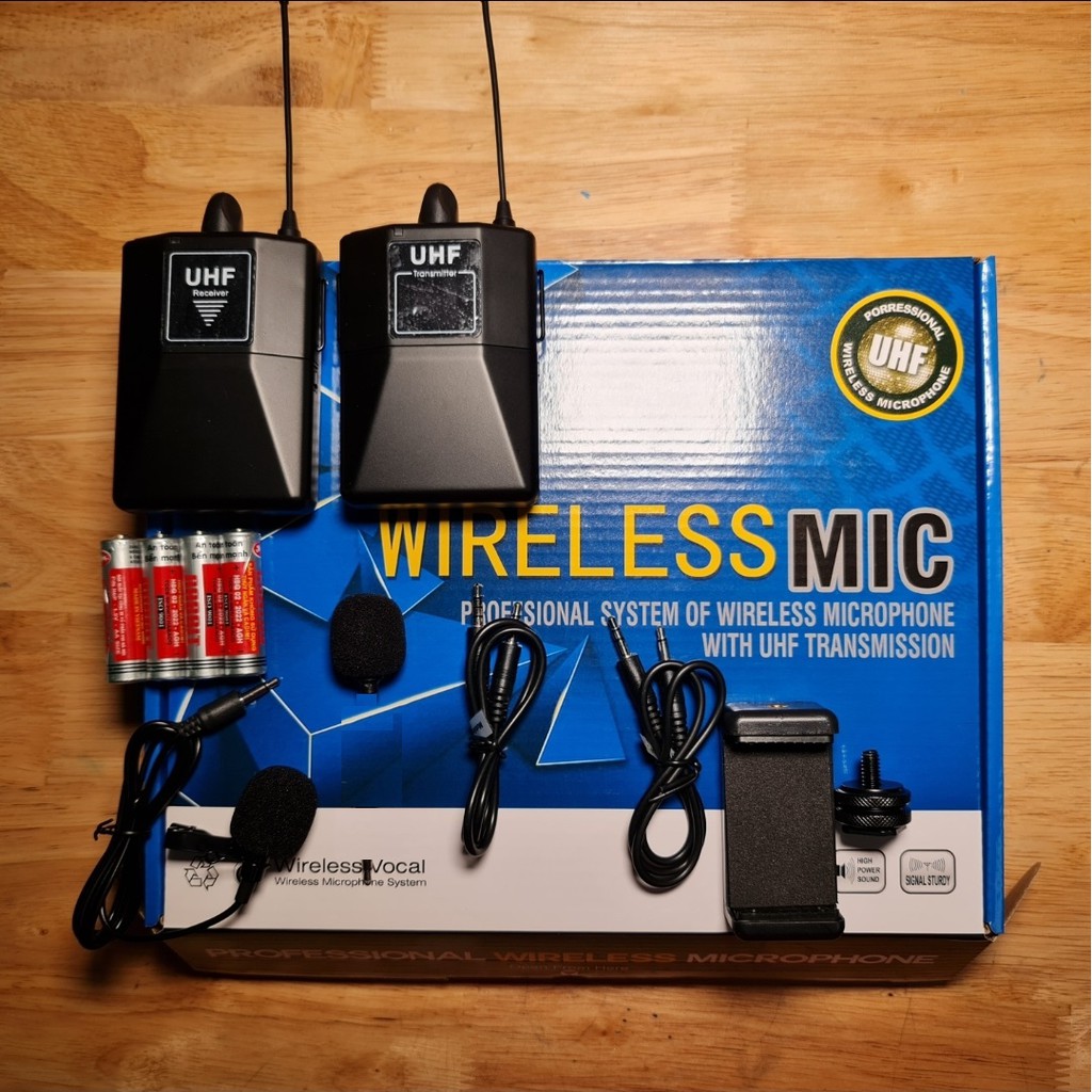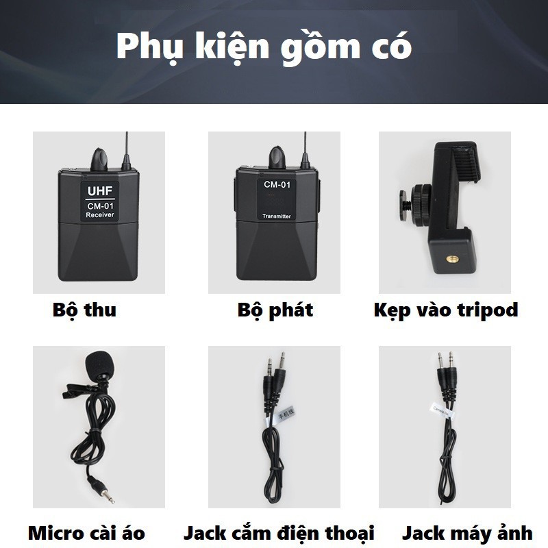 -Bộ sản phẩm được trang bị 1 Lavalier Microphone, có thể gài áo hoặc kẹp vào bộ phát để sử dụng trong trường hợp phỏng vấn.