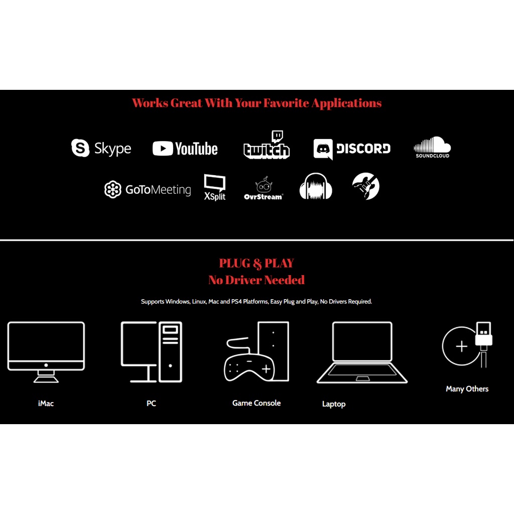 • Hoàn hảo để phát trực tuyến Twitch, podcasting, thuyết minh, phỏng vấn, cuộc gọi Skype / VoIP và ghi âm nhạc