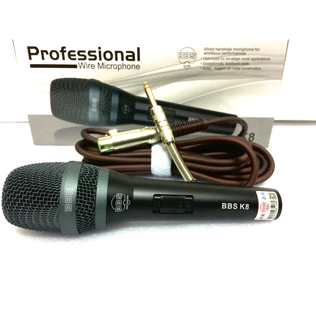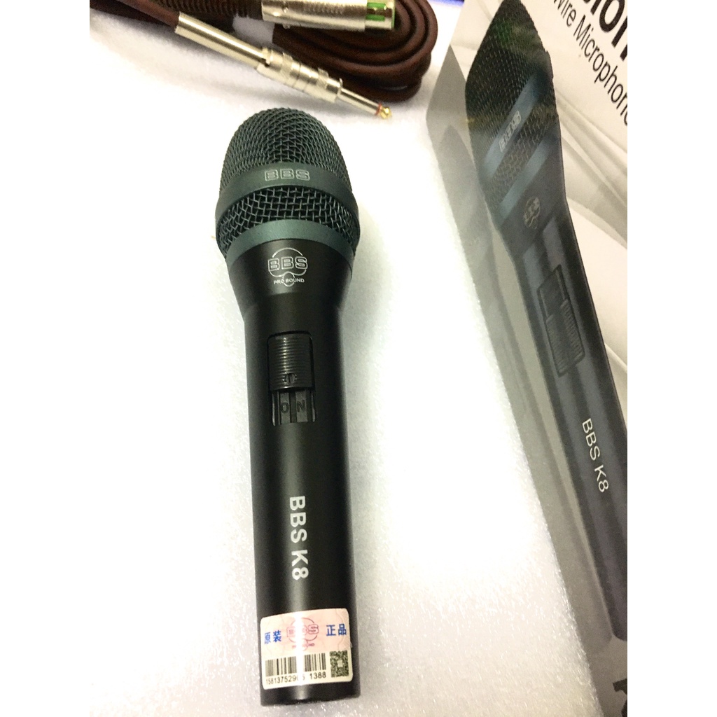 Giới thiệu Micro Có Dây BBS K8 Tay INOX Sơn Tĩnh Điện.Hát Nhẹ,Bắt Nhạy,Hút Giọng,Chống Hú Tốt,Dây Dài Vỏ 3 Lớp Chống Xoắn