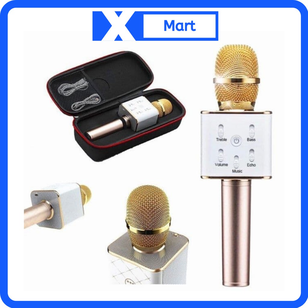 Micro Karaoke Blueooth Q7 giá rẻ - Micro không dây kết nối điện thoại, máy tính bảng hát karaoke công suất 6W