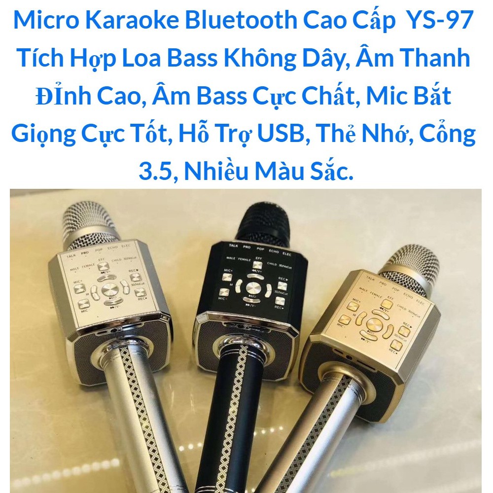 • Loa mic bluetooth YS97 GrownTech là dòng Micro Karaoke Bluetooth cao cấp tích hợp loa Bass không dây