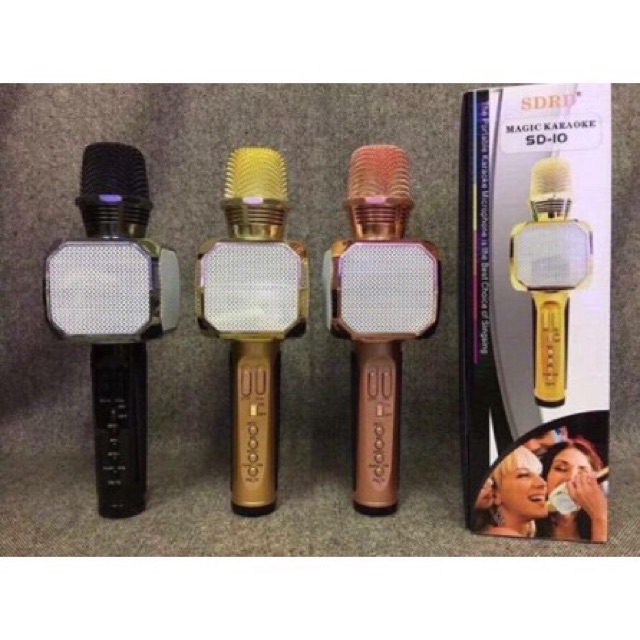 Micro Karaoke Bluetooth kèm loa SDRD SD-10Mic Karaoke SD-10 là thiết bị giúp kết nối với điện thoại Smartphone thông qua sóng Bluetooth.Nhờ trang bị cả loa và mic trên cùng một sản phẩm nên chỉ cần mở một bản nhạc bất kì từ điện thoại là có thể phát trực tiếp ra loa, thỏa thích hát karaoke ngay tại chỗ với chất lượng âm thanh to, rõ cực đỉnh..