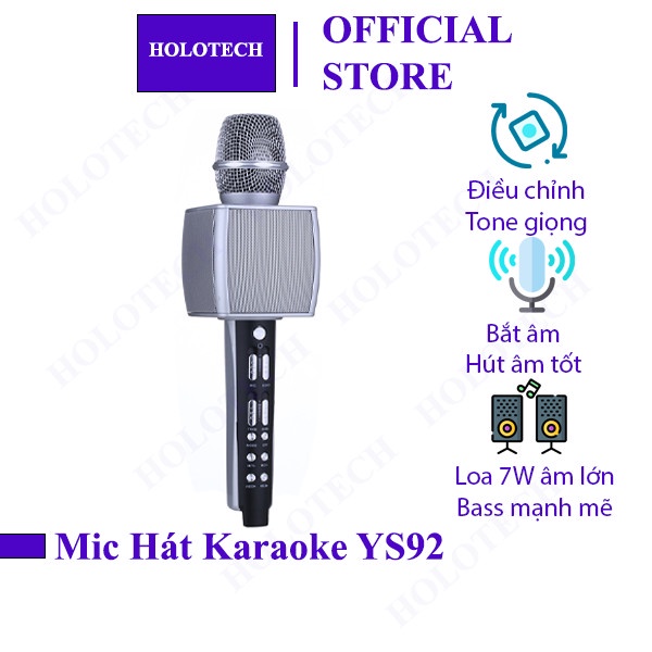 Micro Karaoke Bluetooth Không Dây YS92 Kèm Loa Âm Lớn Bắt Giọng Hát Hay Hỗ Trợ Thẻ Nhớ, Thu Âm Chuyên Nghiệp