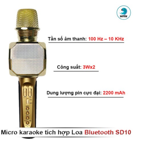 - Loa Bluetooth Micro Karaoke SD 10 có nút chỉnh lớn nhỏ, ngưng lại và qua bài ngay trên mic luôn...