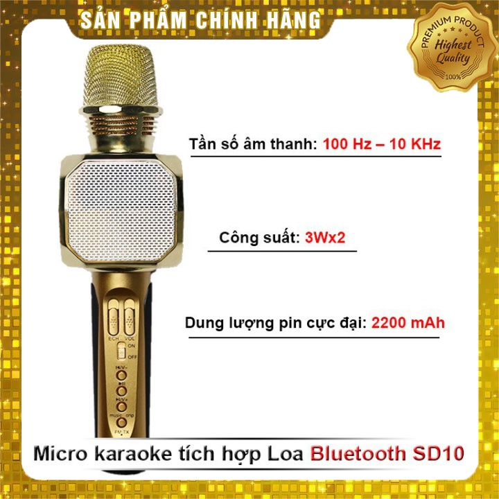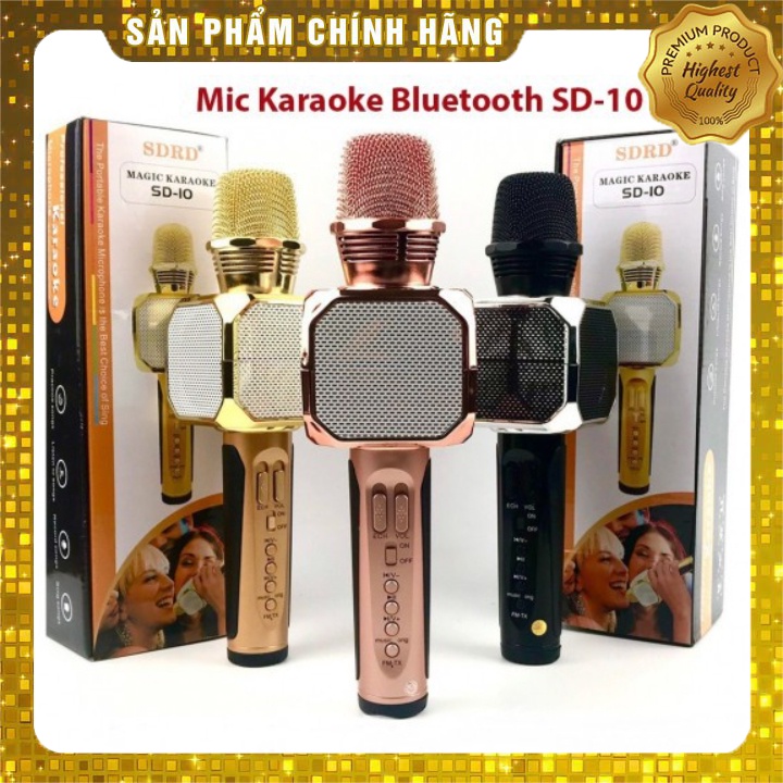 - SD-10 là phiên bản mới nhất dòng micro bluetooth karaoke kèm loa SD đình đám trên thị trường hiện nay, với nhiều chế độ chỉnh giúp tăng độ ấm, âm thanh ấm áp, trong trẻo,.. cho giọng hát thêm nhẹ nhàng, có nguy cơ trở thành ca sĩ.