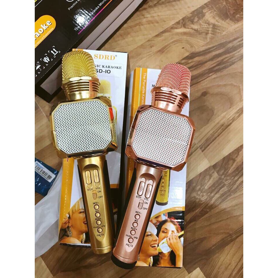 - SD-10 là phiên bản mới nhất dòng micro bluetooth karaoke kèm loa SD đình đám trên thị trường hiện nay, với nhiều chế độ chỉnh giúp tăng độ ấm, âm thanh ấm áp, trong trẻo,.. cho giọng hát thêm nhẹ nhàng, có nguy cơ trở thành ca sĩ.