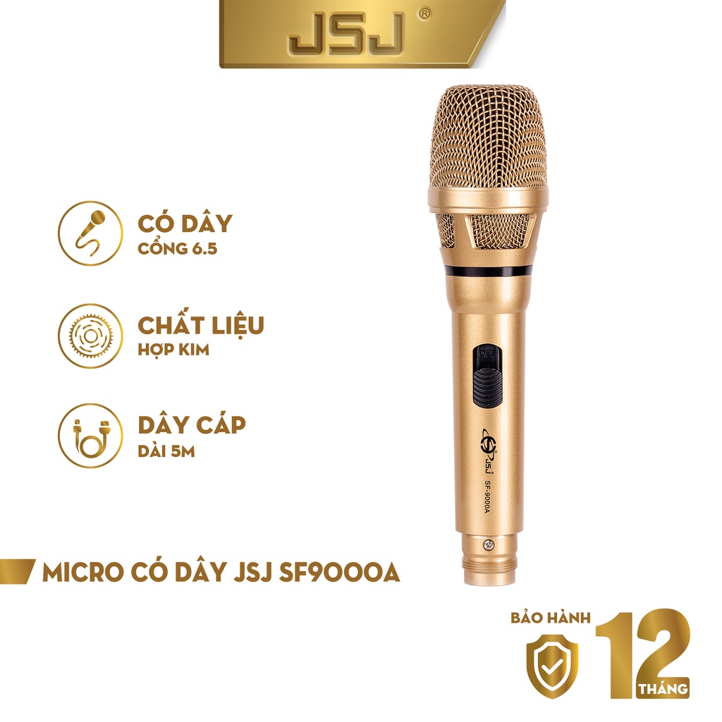 Micro karaoke có dây cao cấp JSJ SF-9000A thiết kế sang trọng mỹ quan hợp xu hướng đầu mic làm từ kim loại vàng