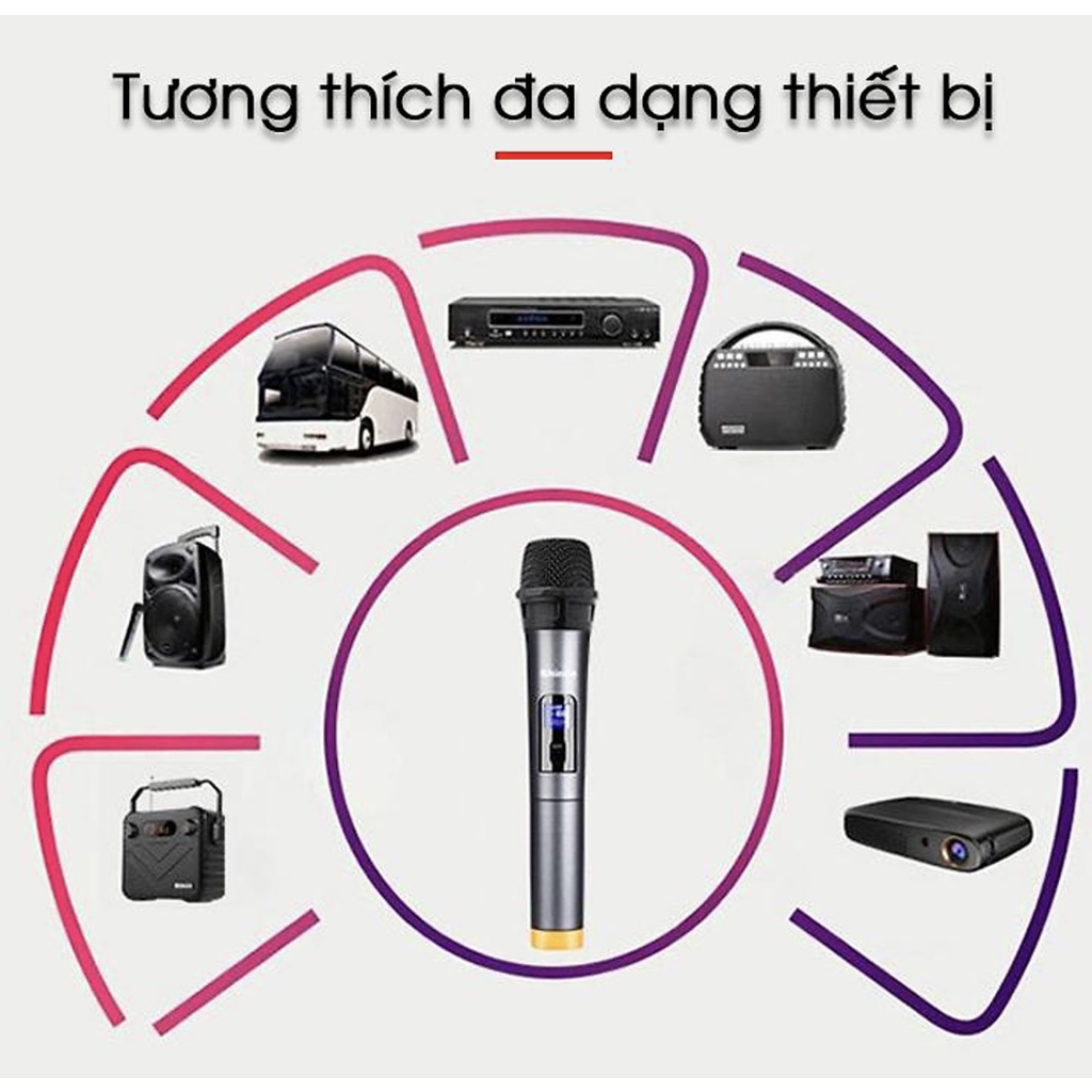 Micro Karaoke không dây đa năng cao cấp UHF V12- dành cho loa kéo loa bluetooth amply hát karaoke zack cắm 3.5 6.5mm