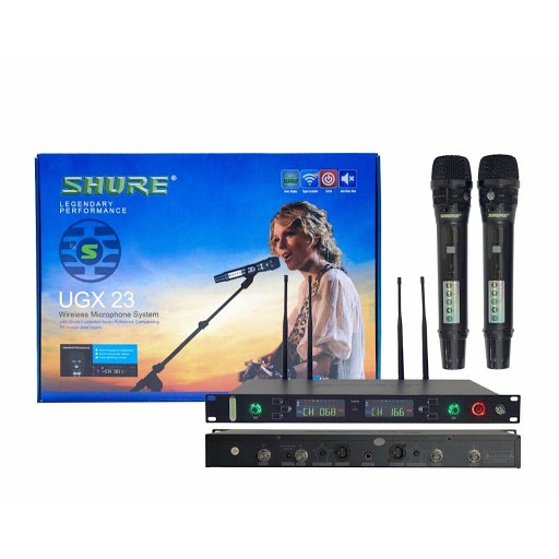 Giới thiệu sản phẩm micro Sh.ure UGX 23 - 4 râuMicro không dây SHU.RE UGX 23 là phiên bản nâng cấp mới nhất của hãng SH.URE trong năm 2020 này, với sự nâng cấp về thiết kế và tính năng nổi trội so với các mã UGX 21, UGX 20, UGX 10, UGX 9 và UGX 8. Đây là dòng micro hát hay trong tầm tiền, được nhiều gia đình và quán hát ưa chuộng lựa chọn có mặt trong bộ dàn karaoke.