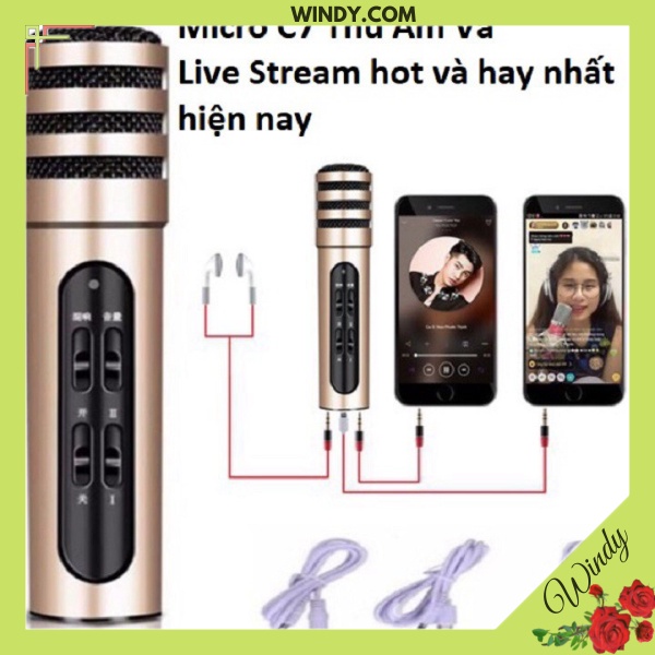Micro Karaoke Livestream Thu Âm C7 Âm Thanh Chuyên Nghiệp + Tặng Tai Nghe WD368