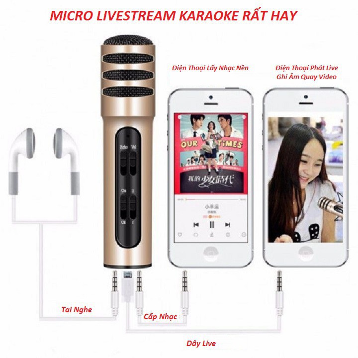 - Micro Karaoke LiveStream C7 thiết bị hát livestream facebook nhỏ gọn, đặc biệt hát app karaoke trên điện thoại thì hay tuyệt vời, đầy đủ tính năng như một sound card thực thụ ( Echo, âm thanh trung thực ), tiện lợi mang theo bên mình, thời lượng pin sử dụng từ 6h -10h, phù hợp tất cả hệ điều hành ( IOS, Android… )