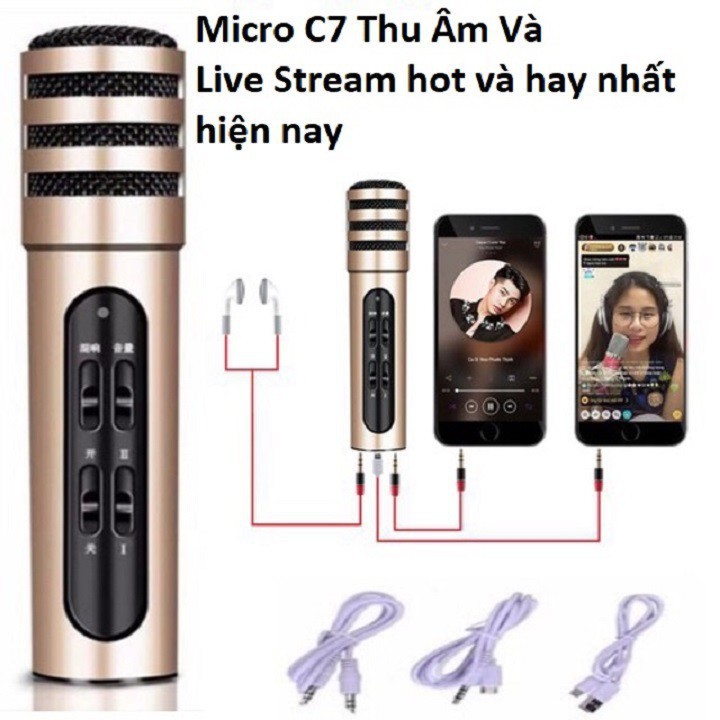 Thiết Bị Âm Thanh > Micro thu âm || Micro Karaoke/Micro Livestream Thu Âm C7 Âm Thanh Chuyên Nghiệp + Tặng Tai Nghe hàng Chính HãngCòn hàng