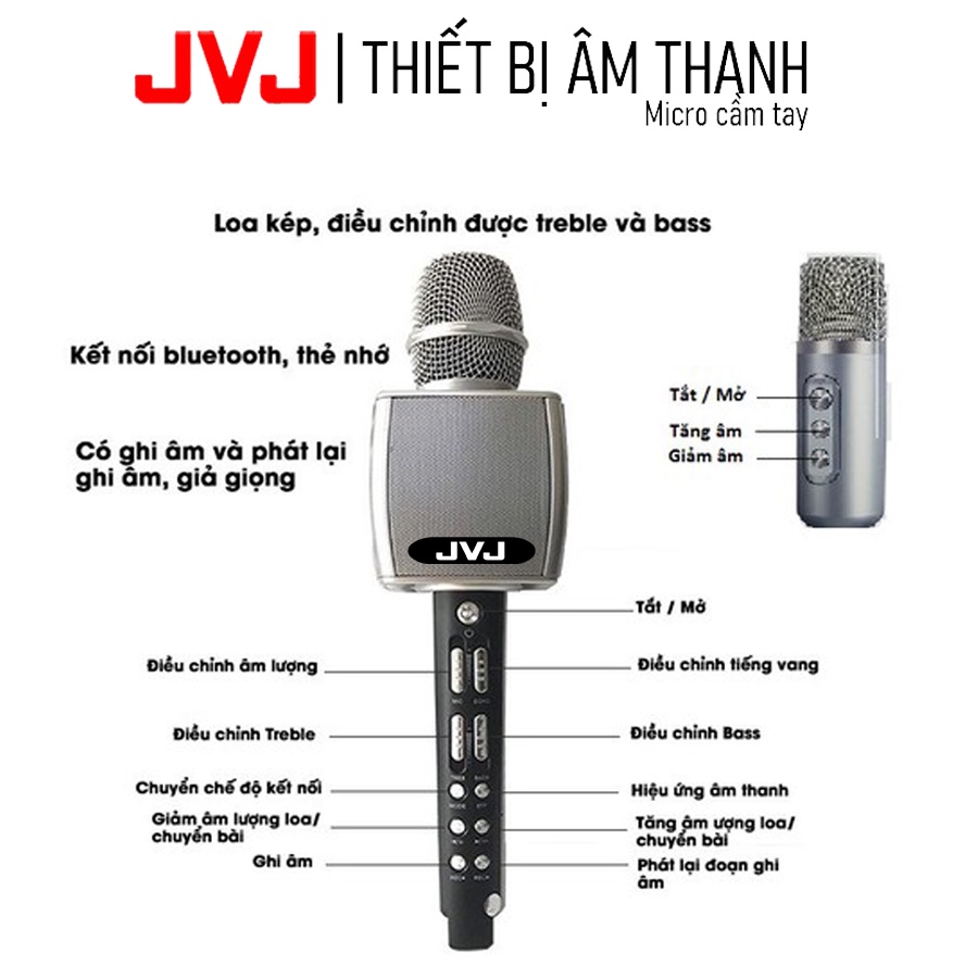 Micro karaoke YS 98 JVJ bluetooth Không dây kèm mic song ca - Mic YS 98 kết nối bluetooth nâng giọng tốt - bảo hành 6T