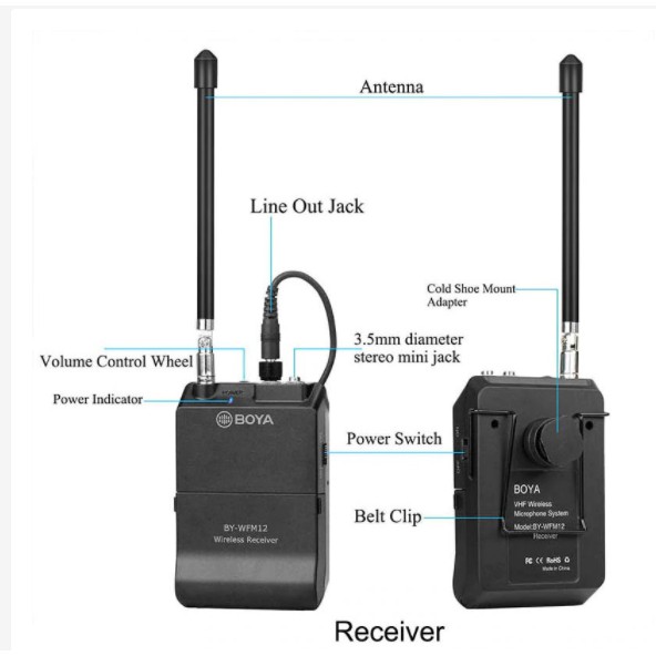 - Bộ micro không dây boya BY-WFM12 được trang bị sóng VHF dải tần riêng với 12 kênh sóng, cho khả năng ổn định tín hiệu cao, không bị lẫn sóng hoặc suy hao tín hiệu.